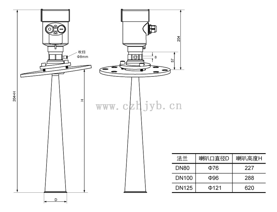 ● 天線尺寸小,便于安裝;非接觸雷達(dá),無磨損,無污染。